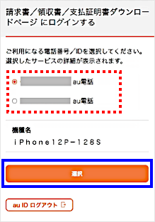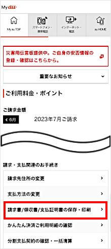 [請求書/領収書/支払証明書の保存・印刷]をタップします。