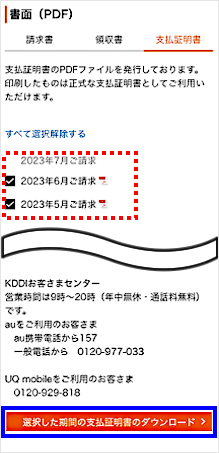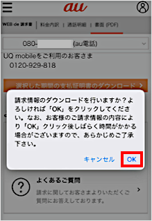 My UQ mobile(Web)の「WEB de 請求書」で、PDF形式でダウンロードできます。