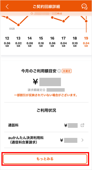 「昨日までのご利用料金(目安)」が表示されます。