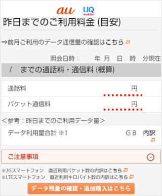 My UQ mobile(Web)で昨日までの利用料金(通話料・通信料の概算など)を確認できます。
