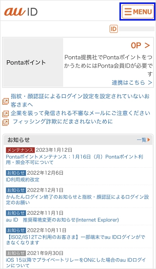 「au ID会員情報サイト」にアクセスし、au ID/パスワードでログインします。