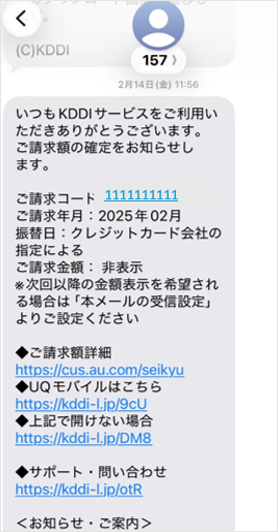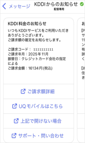 KDDI料金のお知らせ(WEB de 請求書お知らせメール)は、毎月の請求金額が確定したことをお知らせするサービスです。