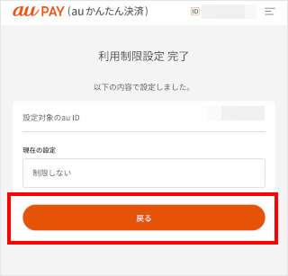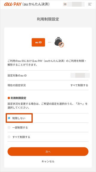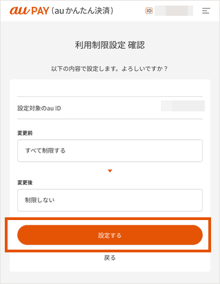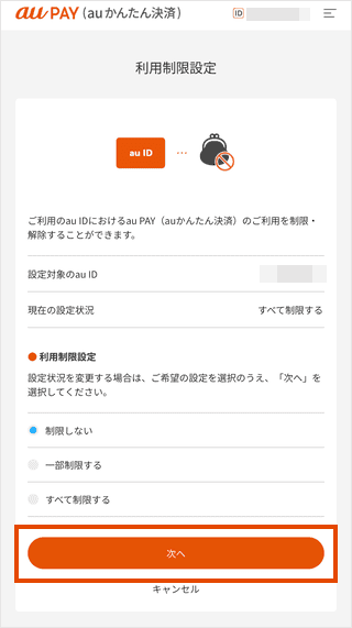 「利用制限設定」にアクセスし、au IDでログインします。