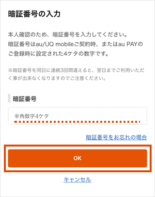 暗証番号を入力し、[OK]をタップします。