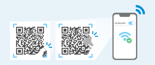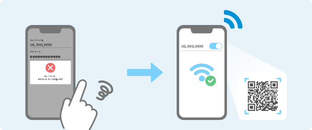 UQ WiMAXのルーターにはQRコード※1がついている機器もあるので、スマホやタブレットで読み取れば、設定不要で簡単にWiFiに接続できます。