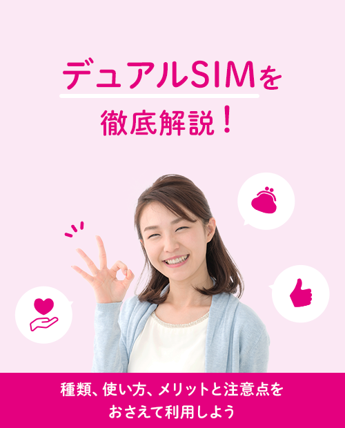 機種によってはSIMカード+SIMカードではなく、SIMカード+eSIM※1の組み合わせでデュアルSIM※2が実現できます。手持ちのスマホの場合、どの組み合わせでデュアルSIM※2が使用できるのかは、よく確認しましょう。
