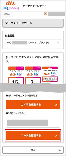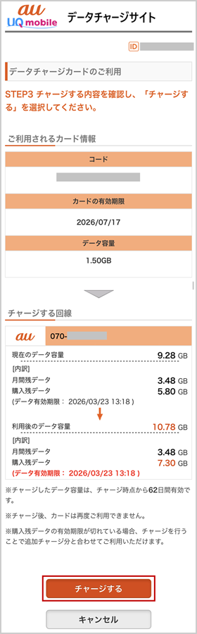 「My UQ mobileアプリ」または「データチャージサイト」からお手続きいただけます。
