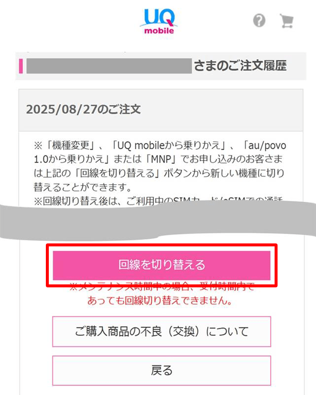 各種お乗りかえ、機種変更時やeSIM再発行時など、ご利用中の端末でお手続きが必要となります(一部の申込区分は除く)。回線切替えが完了しないと、SIMカード/eSIMがご利用いただけない場合があります。