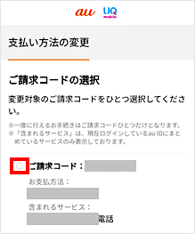 My UQ mobile(Web)の、支払い方法の変更ページでお手続きいただけます。