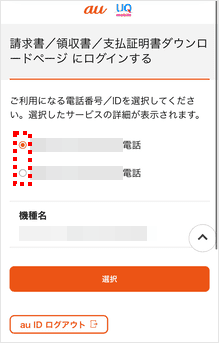 複数のご契約をまとめている場合は、確認したい電話番号を選択します。