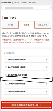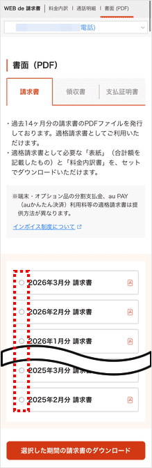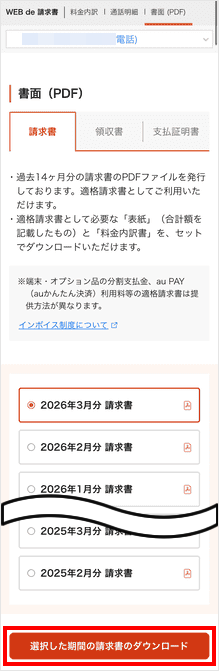 [選択した期間の請求書のダウンロード]をタップします。