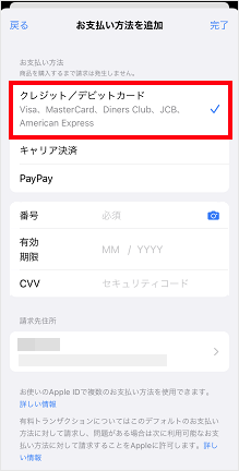[クレジットカード/デビットカード]をタップします。