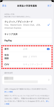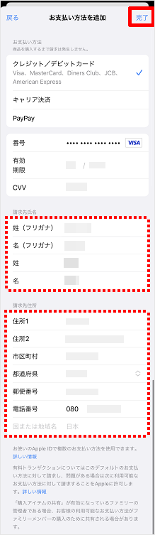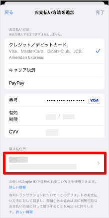 ※請求先情報を変更しない場合は、[完了]をタップし、手順12に進みます。