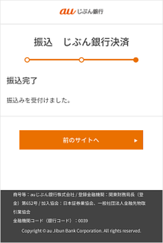 「振込みを受付けました。」と表示されたらチャージ完了です。