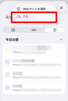 削除したい期間を選択し、[履歴を消去]をタップします。