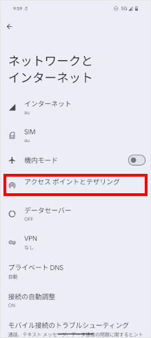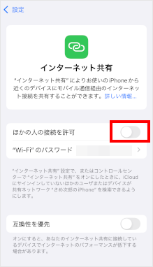 テザリングを行いたいスマートフォンで、インターネットを共有するための設定を行います。