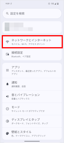 [Wi-Fiアクセスポイント]をタップするとWi-Fiの情報が表示されます。