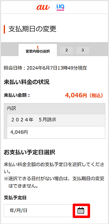 支払い期日の変更をする場合、[カレンダーのマーク]をタップし、支払い予定日を選択します。