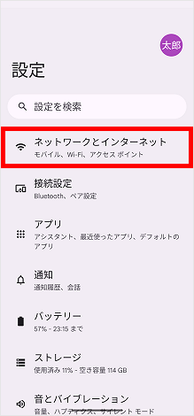 [ネットワークとインターネット]をタップします。