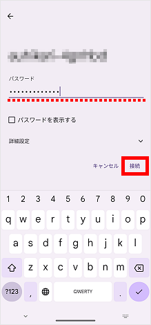 パスワード(暗号化キー)を入力して[接続]をタップします。