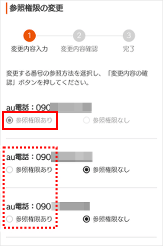 参照権限を追加したいすべての回線の[参照権限あり]をタップします。