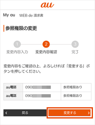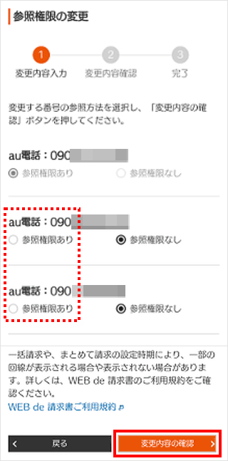 参照権限を追加したいすべての回線にチェックが入っていることを確認し、[変更内容の確認]をタップします。