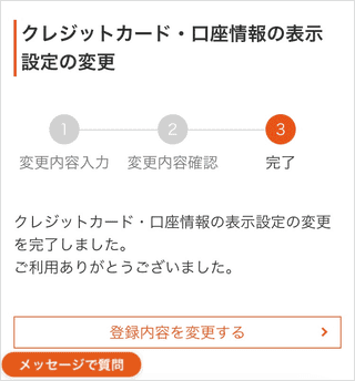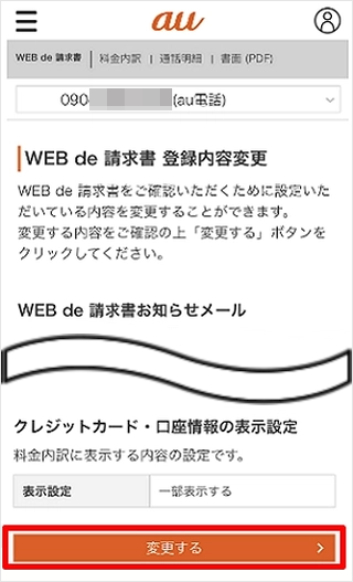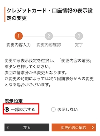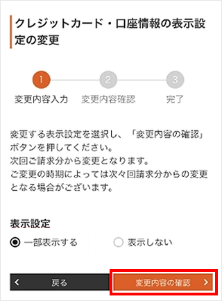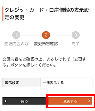 「クレジットカード・口座情報の表示設定」の[変更する]をタップします。