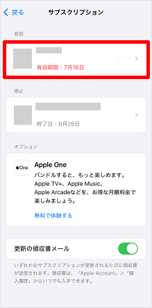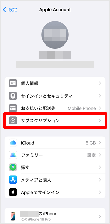 ※[<サブスクリプション]が表示されている場合は、タップするとサブスクリプションの一覧が表示されます。