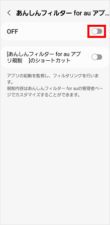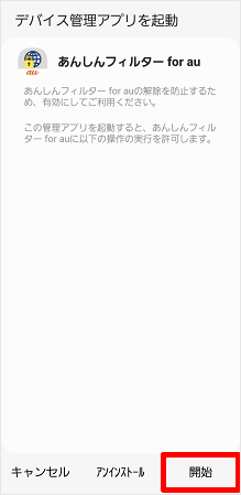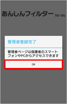 お子さまの端末の「あんしんフィルター for au アプリ」で、管理者登録を行います。