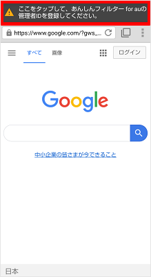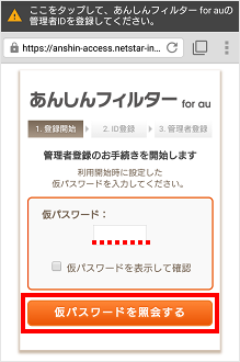 [ここをタップして、あんしんフィルター for auの管理者IDを登録してください。]をタップします。