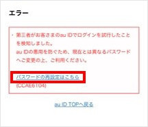 au IDの不正利用を防ぐため、au IDのパスワード変更が必要です。