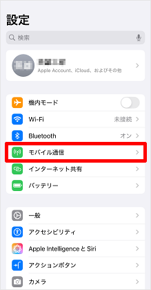 [モバイル通信]をタップします。