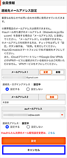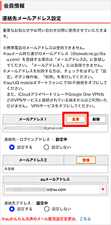 au ID会員情報サイトで、連絡先メールアドレスを変更できます。