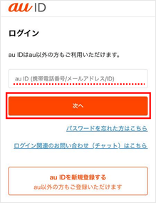 「指紋・顔認証によるログイン設定」に用いたスマートフォンでau ID会員情報サイトへアクセスし、au IDでログインします。