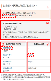 ①1円以上未払い料金がある場合に表示されます。