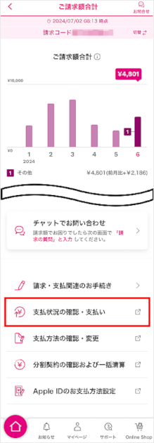 [○月のご請求額合計]をタップします。