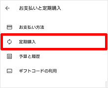 ※画面右上の「アカウントアイコン」がない場合は、画面左上の[メニューアイコン(三本線のマーク)]をタップ→[お支払いと定期購入]の順にタップし、手順3に進みます。