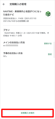 定期購入中のコンテンツが表示されます。解約したいコンテンツをタップします。