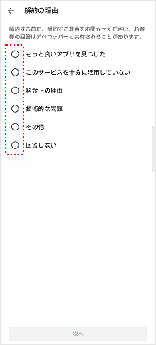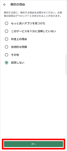「解約の理由」を選択します。