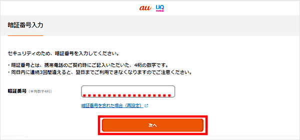 「My UQ mobile(Web)」にアクセスし、au IDでログインします。