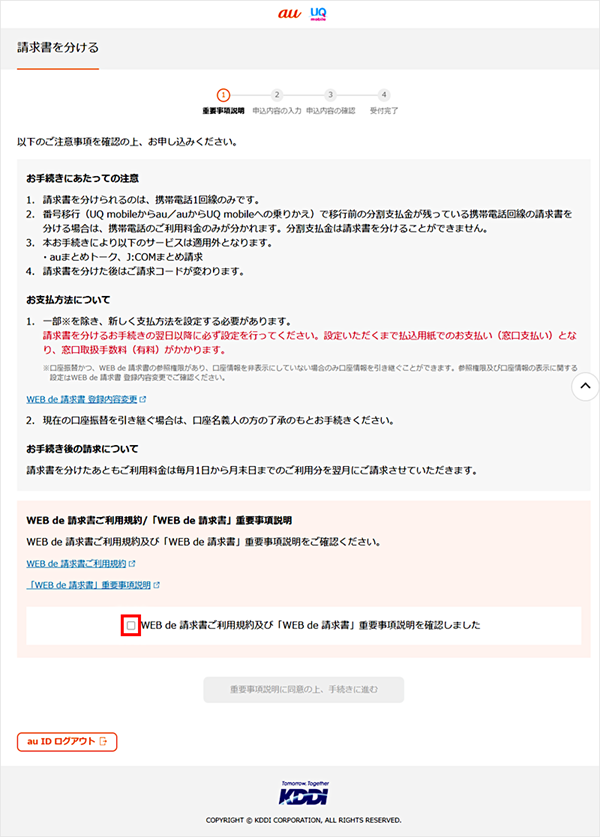 重要事項説明内容をご確認の上、チェックボックスをタップします。