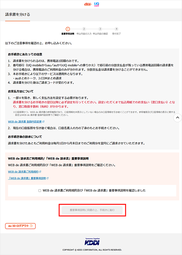 [重要事項説明に同意の上、手続きに進む]をタップします。