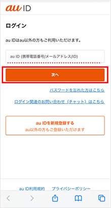 ご利用されるau IDを入力し[次へ]をタップします。