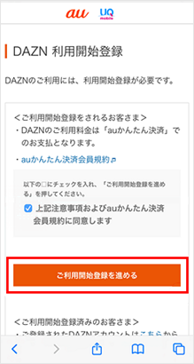My auでDAZNへお申し込み後、DAZN会員登録時に、既にご利用中のDAZNアカウントでログインしてください。