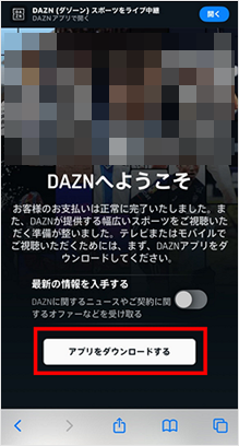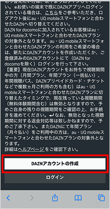 [DAZNアカウントの作成]をタップします。