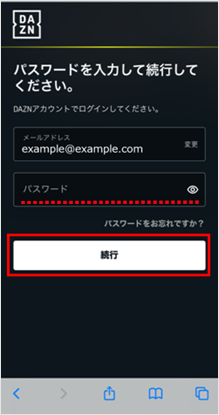 登録済のDAZNアカウント(メールアドレス)とパスワードでログインします。