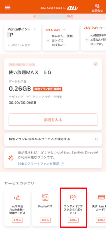 [エンタメ(サブスクぷらすポイント)]をタップします。