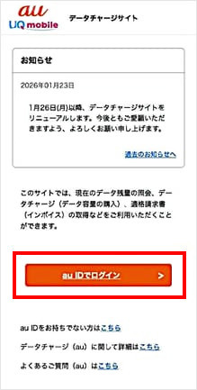 [au IDでログイン]をタップし、手続きを行うau IDでログインします。