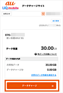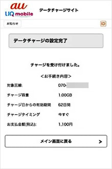 データチャージは、My UQ mobile(アプリ)で手続き可能です。