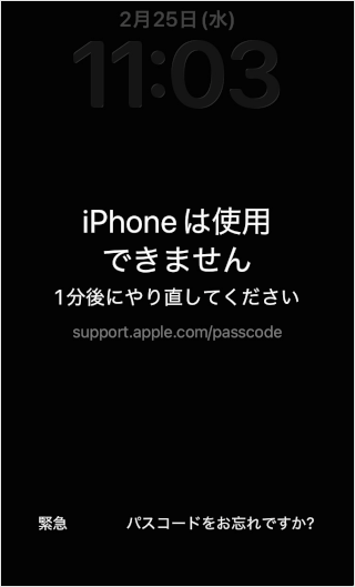 間違ったパスコードを入力すると、以下の画面が表示されます。